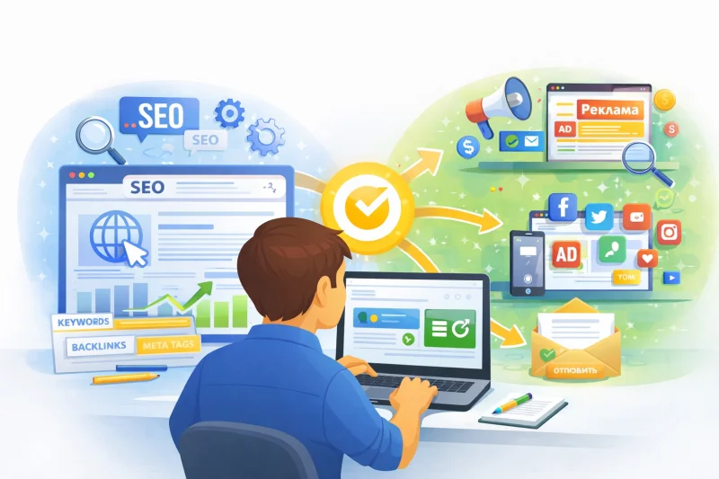 - Влияние на другие каналы: SEO усиливает эффективность контекстной рекламы и социальных сетей.